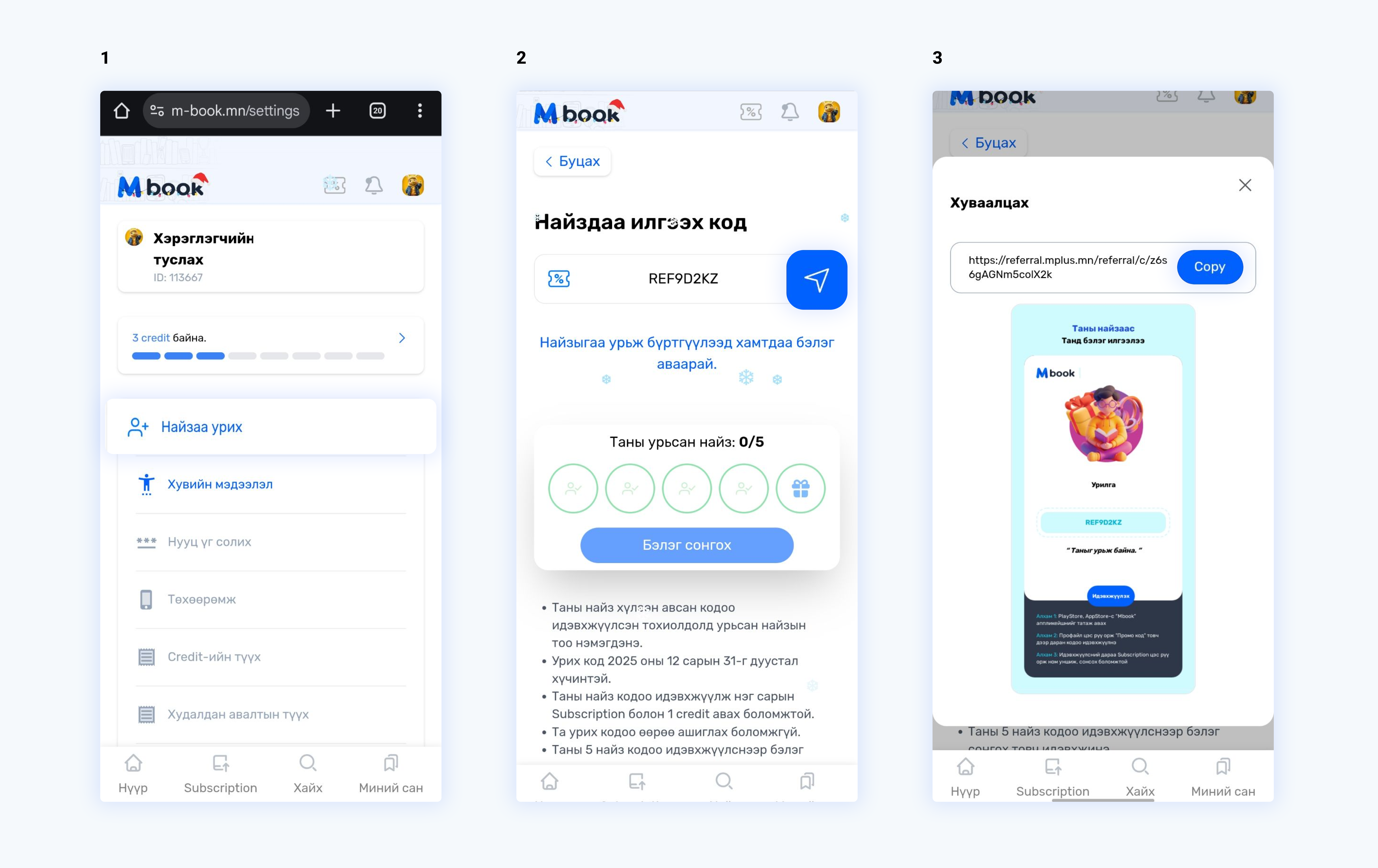 Өнөөдрөөс эхлэн Mbook хэрэглэгч бүр 5 найздаа Subscription үйлчилгээний 1 сарын эрх бэлэглэх боломжтой боллоо!